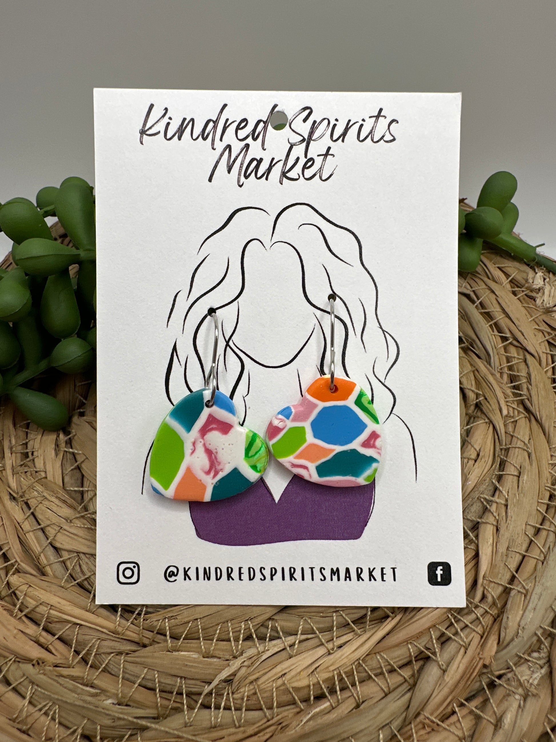 Kindred Spirits Market pieces are all handmade using polymer clay. Earrings are lightweight and make for easy wearing. Findings are all nickel free.