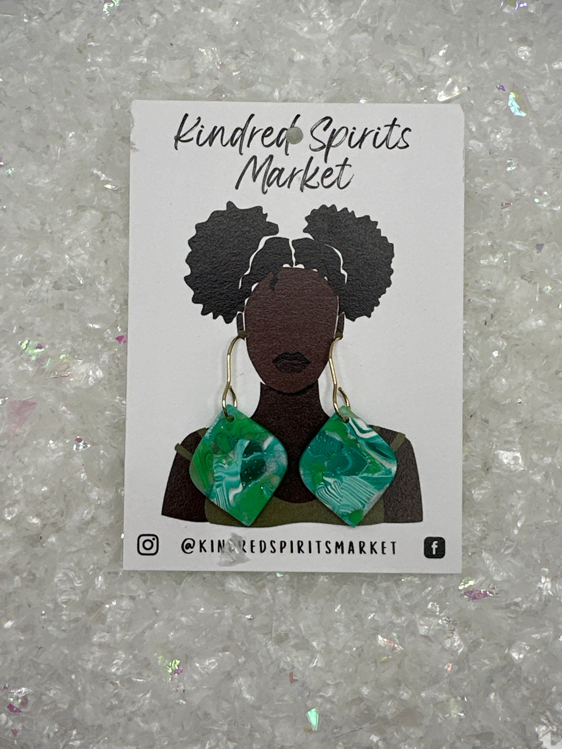 Kindred Spirits Market pieces are all handmade using polymer clay. Earrings are lightweight and make for easy wearing. Findings are all nickel free.