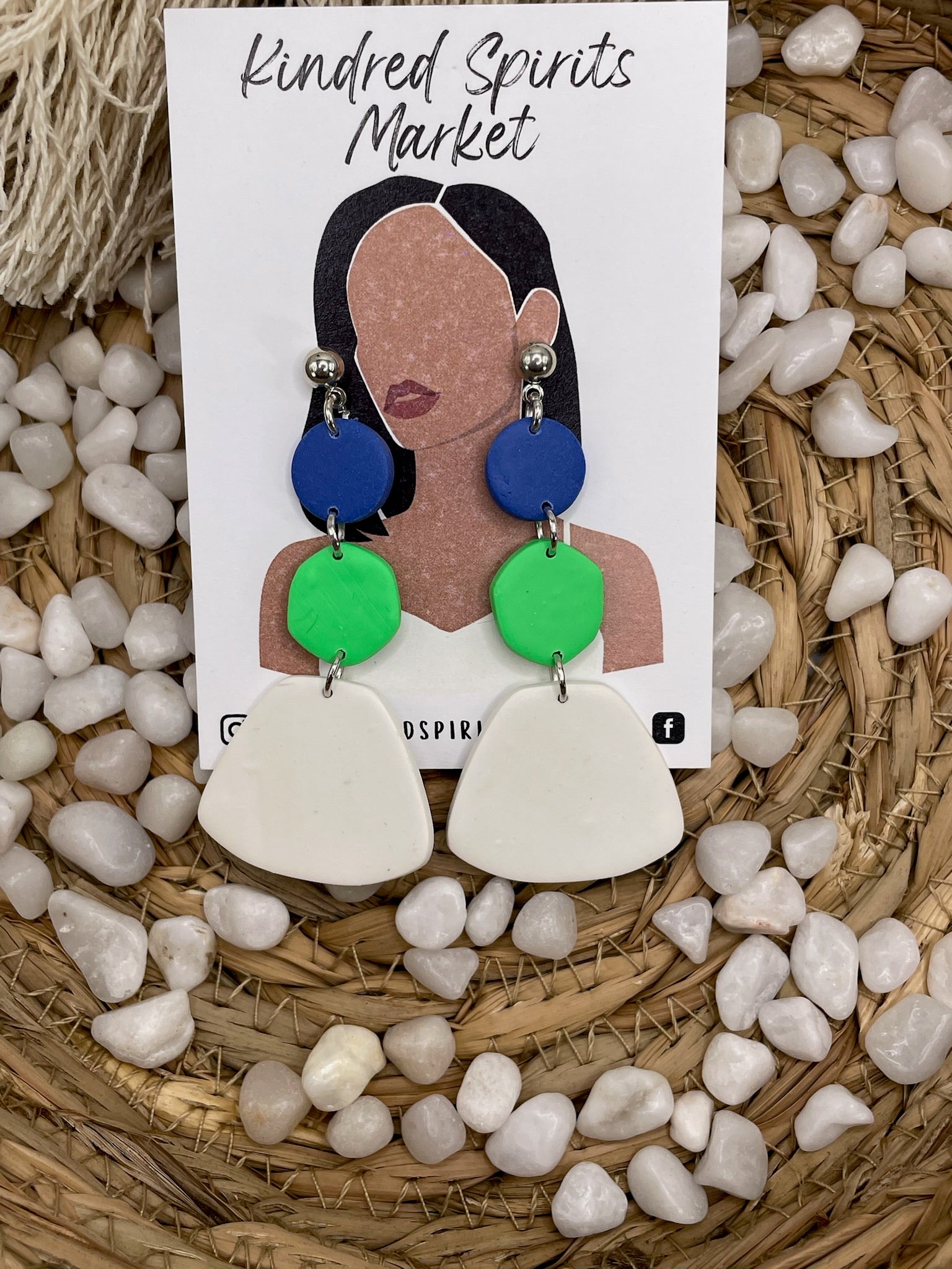 Kindred Spirits Market pieces are all handmade using polymer clay. Earrings are lightweight and make for easy wearing. Findings are all nickel free.