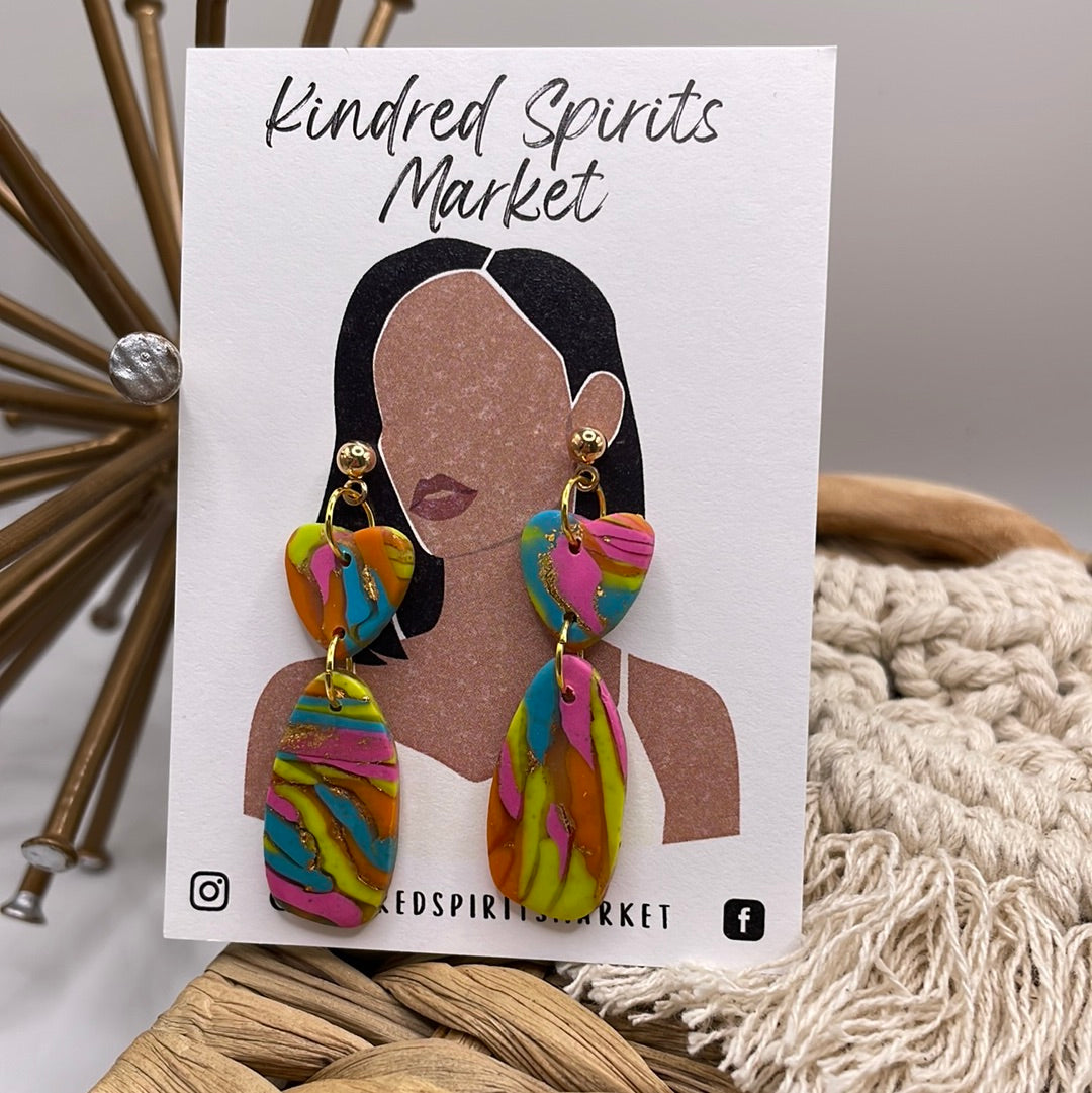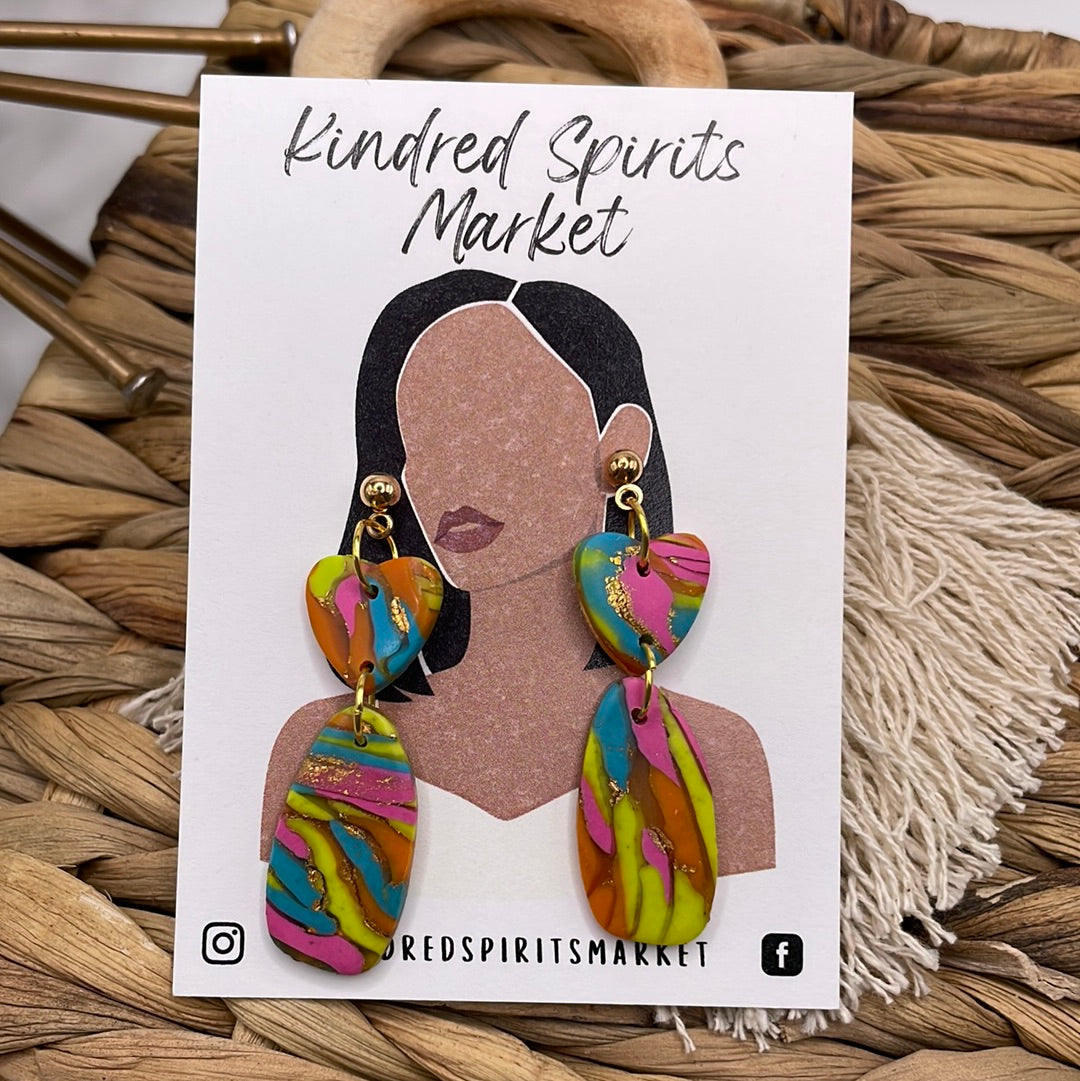Kindred Spirits Market pieces are all handmade using polymer clay. Earrings are lightweight and make for easy wearing. Findings are all nickel free.